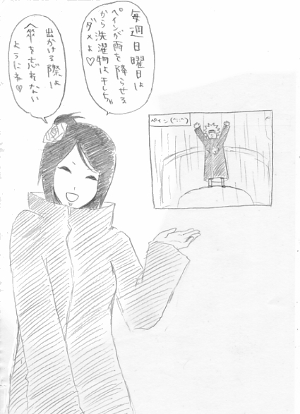 ペイン:「小南(コナン)…オレが雨を上げたらお前の術で侵入者を探せ」