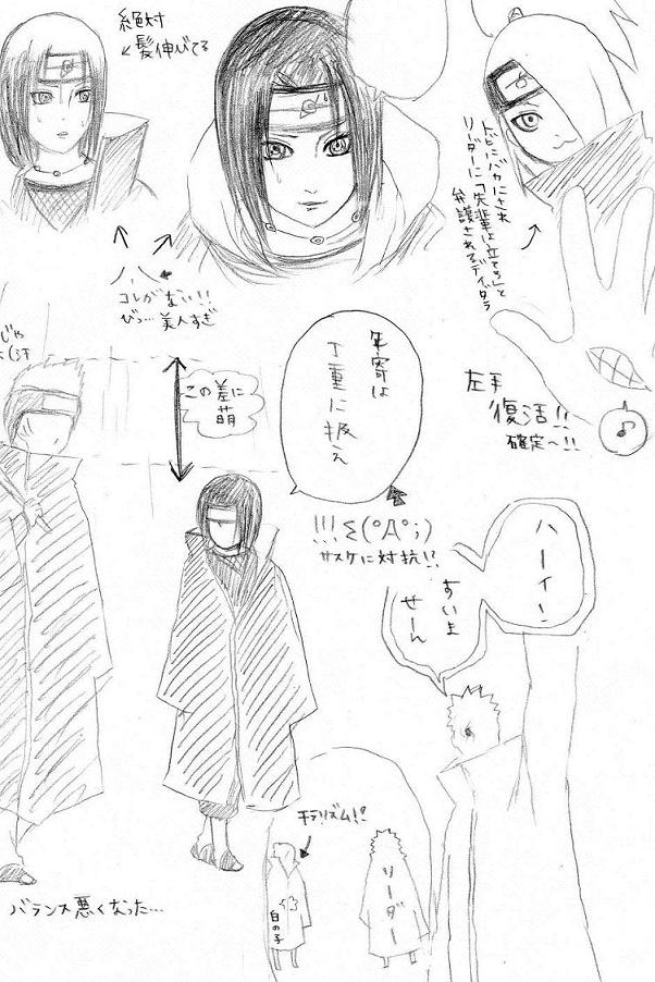 勢い余って書き殴ってしまった気になる箇所のピックアップ。見難いなあ…模写難しいよイタチさん…。