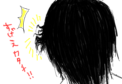 絵じゃわかりにくいんだけども、かなりアーティスティックな寝癖でございました。